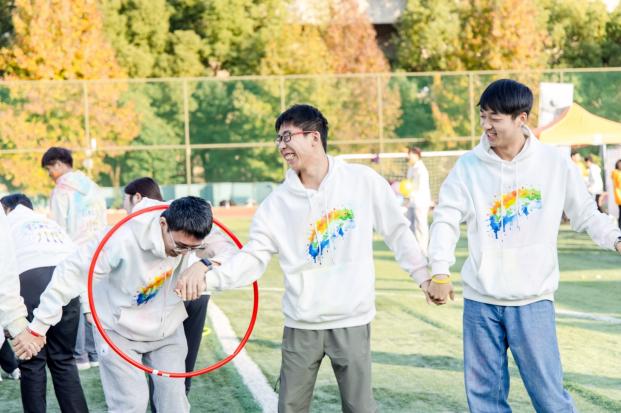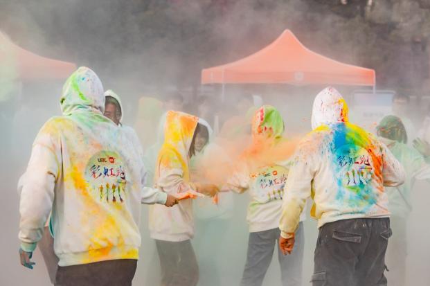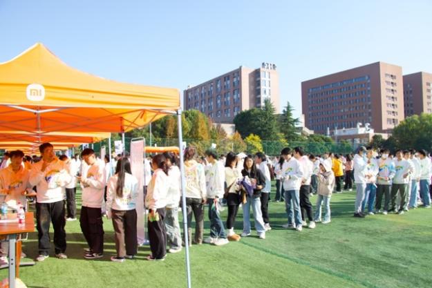 活动当日,上千名师生纷至沓来,在检录处排队领取定制卫衣、贴纸、手环等道具,并在表白墙处签名打卡,记录这难忘的时刻。13点14分,操场上的第一轮舞台表演,掀起了现场的热烈气氛。随后,大家穿着印有活动logo的卫衣,精神饱满地踏上跑道。伴随着工程开元(中国)团委副书记樊洋洋老师的开跑令声以及起点处扬起的彩虹烟幕墙,环校彩虹跑正式开始。在跑步的过程中,大家不仅感受到奔跑带来的活力与快乐,还在路途中的彩粉站点收集彩粉,校园内因彩虹跑充满欢声笑语。