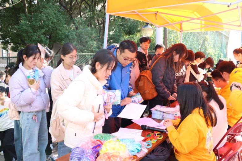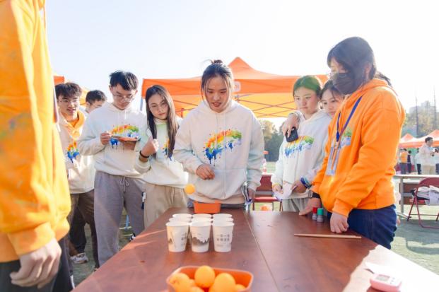 环校跑结束后,大家回到西区操场,纷纷涌向操场上的游戏区,“乒乓球井字棋”“小竹笋的快乐”等各类趣味小游戏等待着大家参与。参与游戏集章抽奖的规则激起了同学们的“胜负欲”,每项游戏都排起了长长的队伍。在游戏中,每位参与者全情投入,脸上洋溢着开心的笑容,拉近了师生之间的情谊,也让整个校园洋溢着浓浓的青春气息。