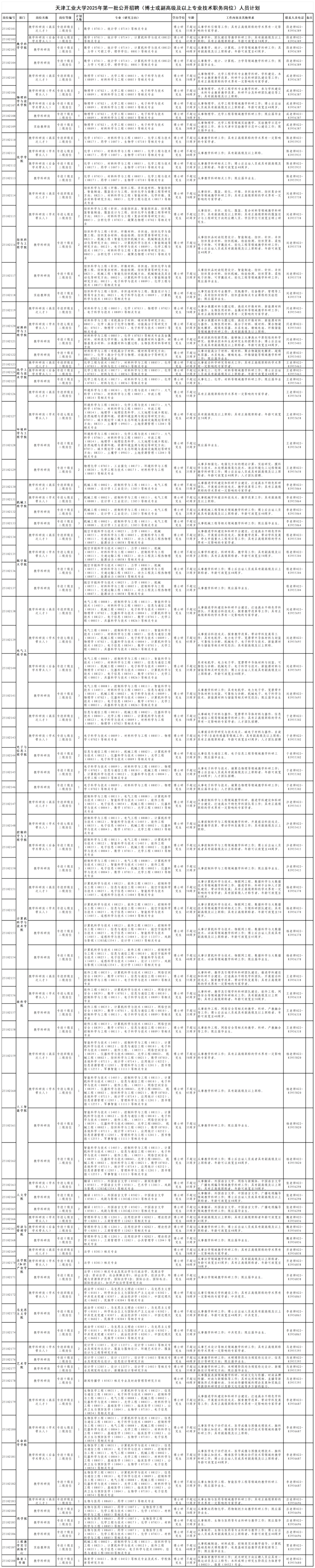 公开招聘方案相关信息于2024年12月2日在天津市教育委员会网站(https://jy.tj.gov.cn)招聘信息专栏和天津工业大学官方网站(https://www.tiangong.edu.cn)公开招聘专栏发布。具体招聘岗位见《天津工业大学2025年第一批公开招聘(博士或副高级及以上专业技术职务岗位)人员计划》(见下表)。