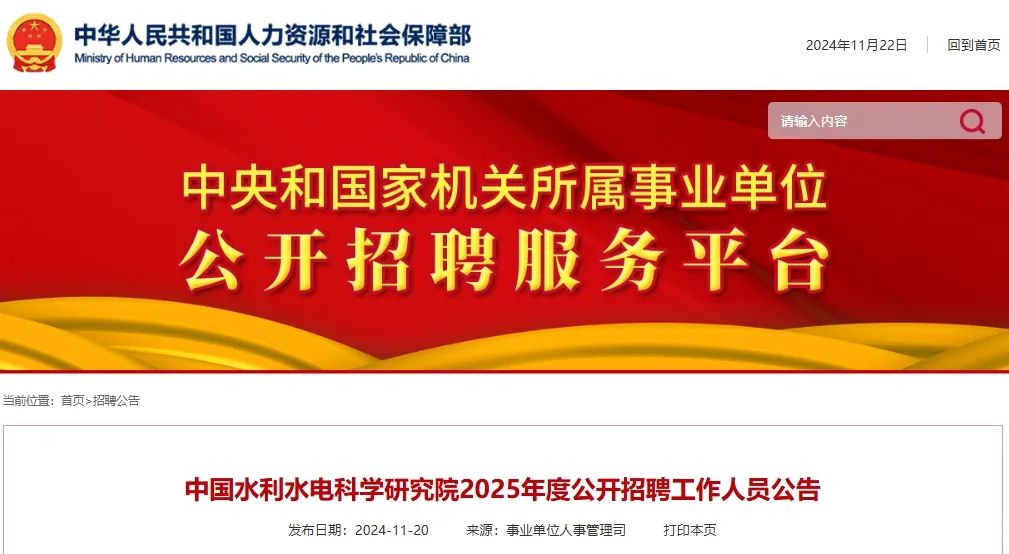 招聘单位简介、岗位信息详见《中国水利水电科学研究院简介》(附件1)《中国水利水电科学研究院2025年度公开招聘工作人员岗位信息》(附件2)。
