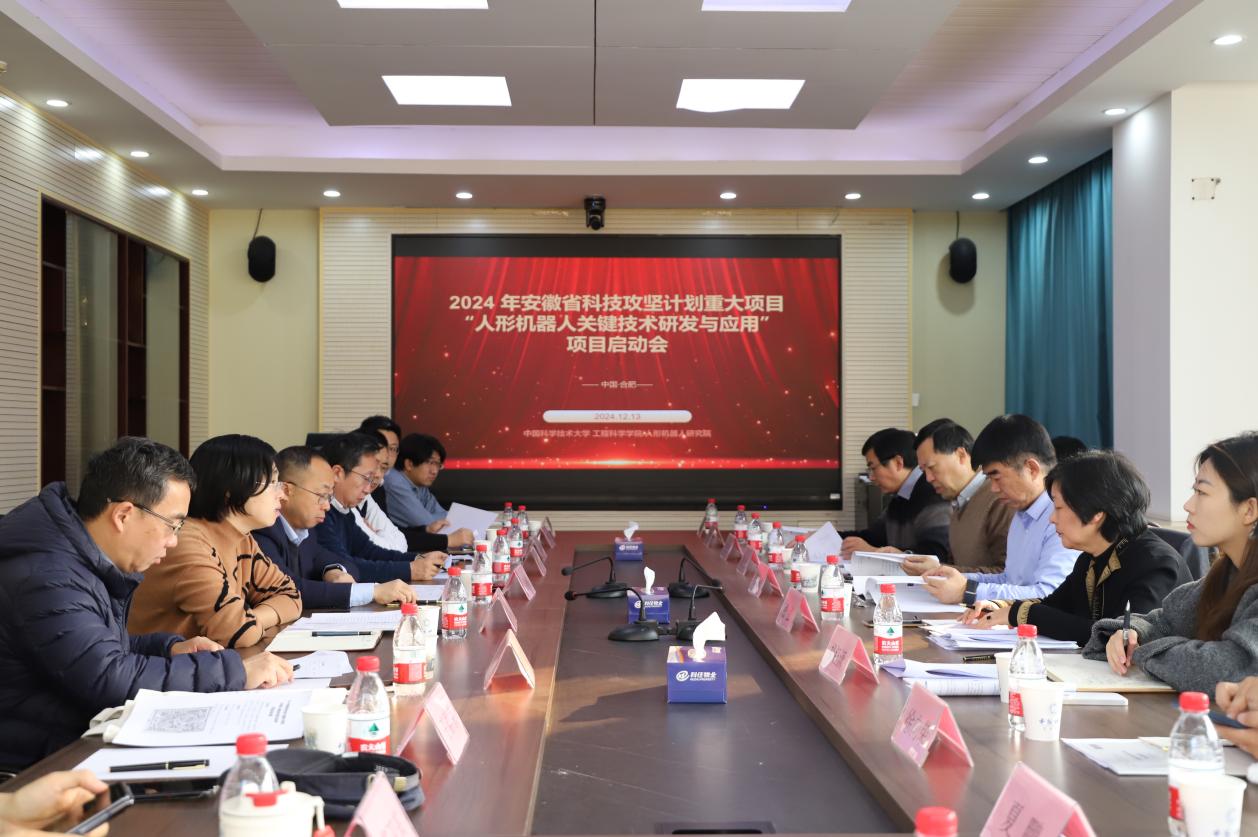 12月13日,由中国科大牵头的2024年安徽省科技创新攻坚计划重大项目“人形机器人关键技术研发及应用”项目启动会在我校工程科学开元(中国)力四楼二楼会议室召开。山东省自动化学会理事长、山东大学李贻斌教授,合肥工业大学韩江教授、中国科开元(中国)合肥物质科学研究院宋全军研究员、安徽工业大学徐向荣教授、哈尔滨工业大学陈浩耀教授等专家,安徽省科技厅前沿技术处处长张弘等项目主管部门领导,中国科大科研部副部长、高技术发展处处长刘静,项目组骨干成员出席会议。