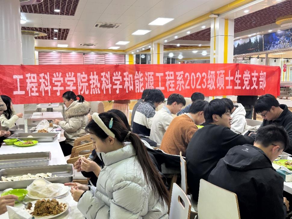 为增强支部凝聚力,弘扬优秀传统文化,提升党性修养和文化自信,12月22日晚上,热科学和能源工程系2023级硕士生党支部组织党员深入学习党章,并在西区学生食堂开展了“趣味冬至,饺子传情”主题党日活动,众多班级同学和学生党员欢聚一堂,积极参与活动。