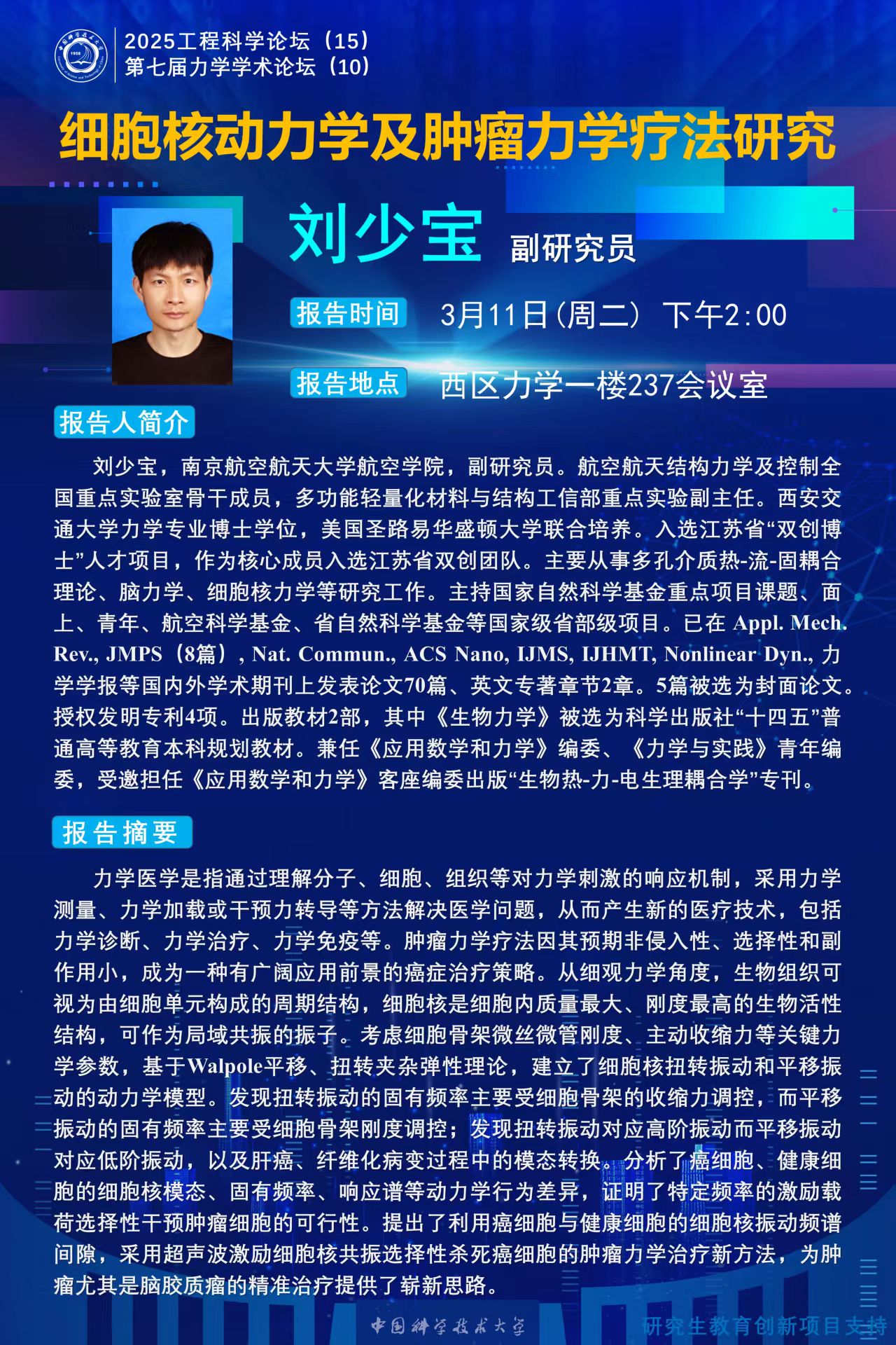 2025工程科学论坛(15)细胞核动力学及肿瘤力学疗法研究