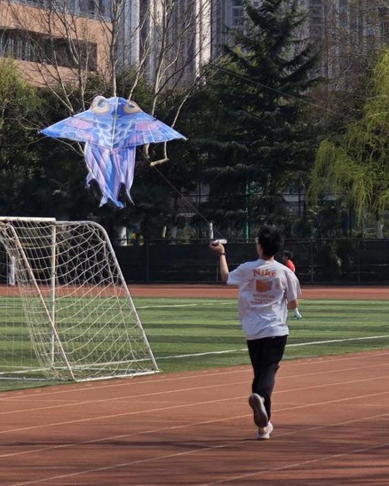 青春作伴乘风舞、共绘理想跃云端。夕阳为西区操场披上金色薄纱,漫天纸鸢却依然不舍离去。同学们三三两两躺在草坪上,望着摇曳生姿的风筝轻声哼唱《永恒的东风》。印有“我的梦、工院造”、“量子追风者”的手绘风筝掠过晚霞,尾翼上悬挂的铃铛在风中叮咚作响。与心中对未来的理想与期待交相辉映,风筝线牵起的是同窗情谊,放飞的是青春理想。