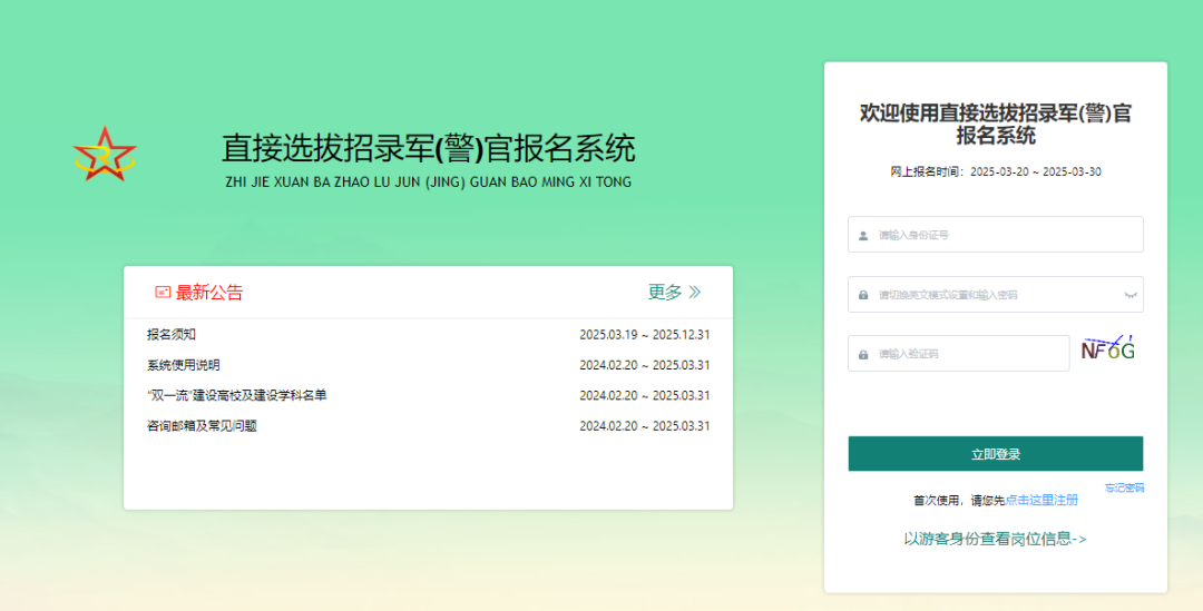 2025年第一批次军队直接选拔招录军(警)官工作正在报名中,报考人员可于3月20日至30日通过“军队人才网”查询具体招录岗位和标准条件,进行在线报名。小编为大家整理了研究院所、军校和医院等直接选拔招录军(警)官公告。请点击图片查看详情。
