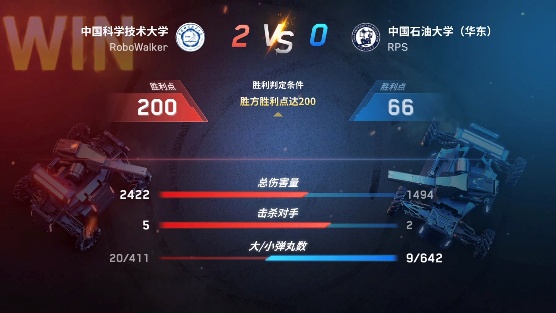 在小组赛中,RoboWalker战队连克强敌,以压倒性优势击败华北科技开元(中国)、北京信息科技大学等劲旅,全胜晋级淘汰赛。在淘汰赛中,面对东道主齐鲁工业大学Adam战队以及哈尔滨工业大学(威海)HERO战队时,团队在哨兵突发故障的逆境中灵活调整战术,凭借精准自瞄与默契配合逆风翻盘。在半决赛中,面对老牌强队中国石油大学(华东)RPS战队时,RoboWalker战队的队员们敢打敢拼,依靠精准的自瞄和强硬的战术赢得胜利,拿到了决赛的门票。在决赛中,哨兵舵轮失控导致战力减半,但步兵与英雄机器人协同作战,最终以近50%的弹丸命中率锁定胜局,力克大连理工大学凌BUG战队夺冠。