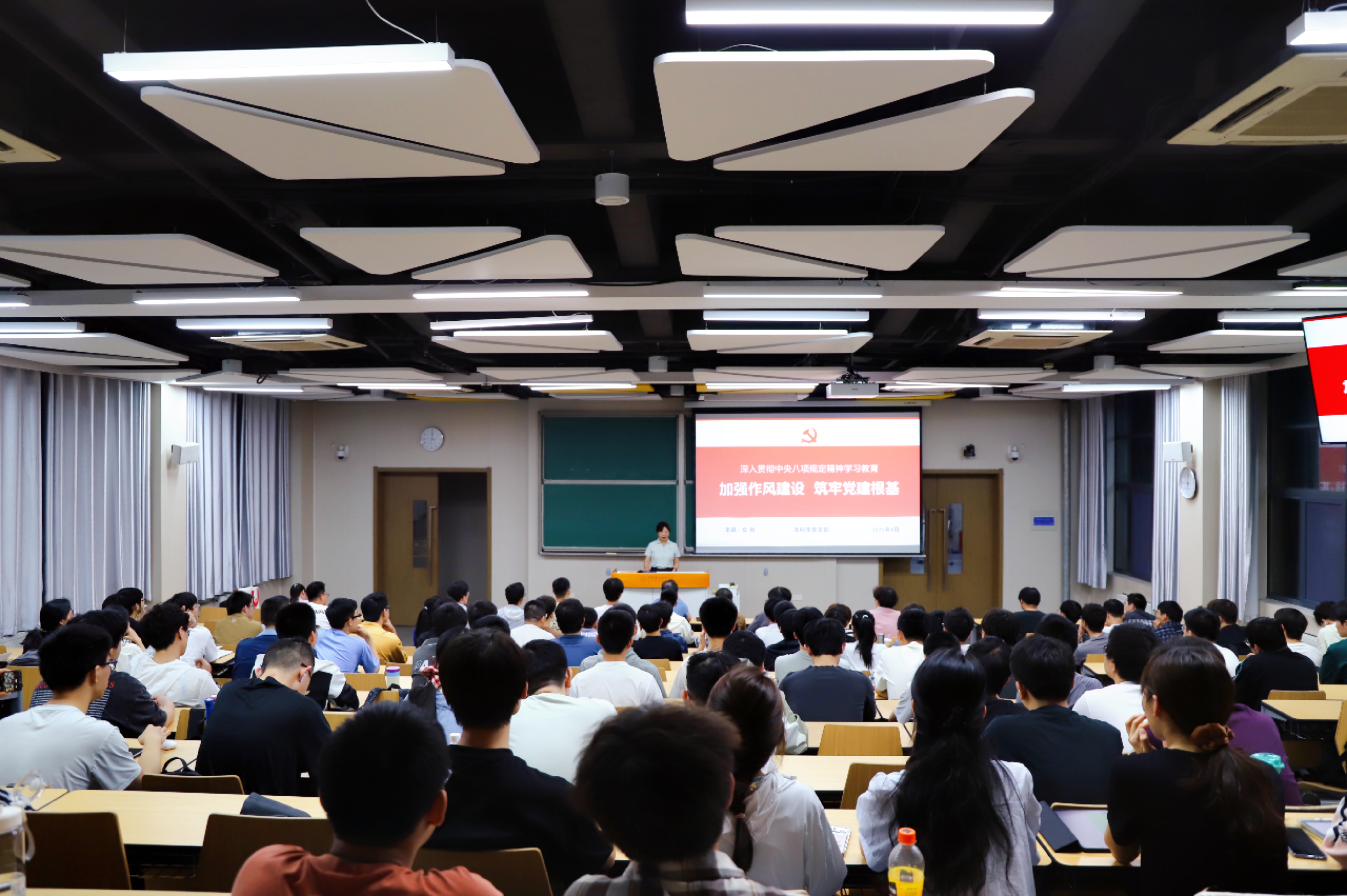 院党委副书记、本科生党支部书记牟玲以“加强作风建设、筑牢党建根基”为题,结合本科生党支部建设与学生工作特点做中央八项规定精神学习教育党课分享。她强调本科生党支部是高校党建的“神经末梢”,是培养青年党员的主阵地,希望年轻的党员和入党积极分子以学业帮扶、心理疏导为主要内容推动“我为群众办实事”常态化,从我做起、从小事做起,建设新时代坚强战斗堡垒。