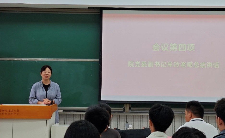 院党委副书记牟玲在总结讲话中指出,学生会不仅是学生组织,更是温暖的大家庭,其核心在于“为师生服务”。她对学生会成员提出四点期望:一是以学业为本,做好时间管理,实现学业与能力双提升二是深入同学、了解需求,办“接地气”的活动,做好“服务者”和“连接者”;三是勇于尝试、不怕犯错,在实践锻炼中成长;四是注重传承与创新,在锻炼能力的同时,收获友谊与快乐。