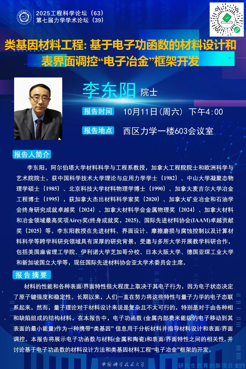 2025工程科学论坛(63)“类基因材料工程:基于电子功函数的材料设计和表界面调控‘电子冶金’框架开发”