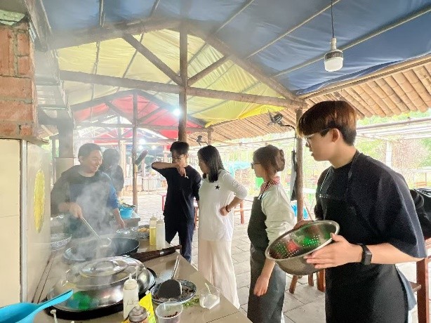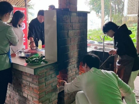 中午,在教练和老师的指导下,同学们分组协作,动手烹饪大锅菜。从备菜到生火,大家分工明确、配合默契。这顿亲手制作的午餐不仅让同学们掌握了基本生活技能,更是一堂生动的劳动教育课,深化了艰苦奋斗的优良作风。
