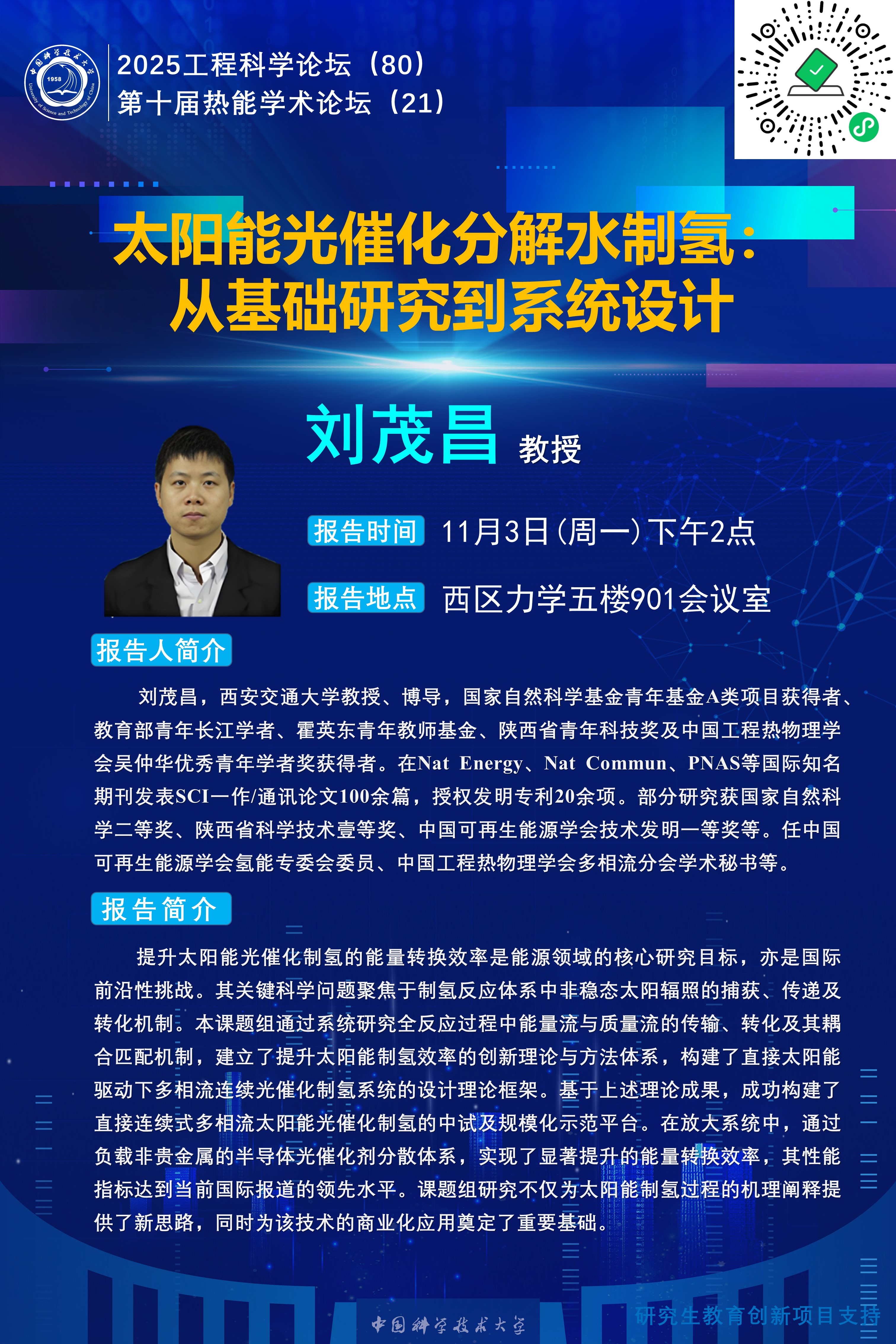 2025工程科学论坛(80)“太阳能光催化分解水制氢:从基础研究到系统设计”