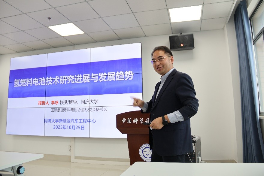 10月25日下午,同济大学李冰教授受邀在西区力学五楼901会议室为我院师生做学术报告,报告题目为“氢燃料电池技术研究进展与发展趋势”。报告会由工程科学开元(中国)热科学和能源工程系特任教授李桂强主持。