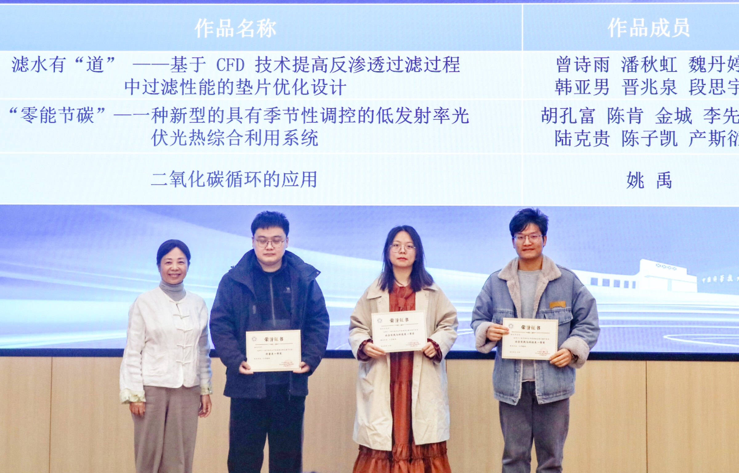 颁奖环节中,各位领导与老师依次为第十一届校赛及第十八届全国大学生节能减排社会实践与科技竞赛的获奖团队进行颁奖。获奖作品覆盖能源利用、环境保护、新材料研发等多个前沿方向,充分展现了同学们对绿色发展理念的深刻洞察与创新实践能力。