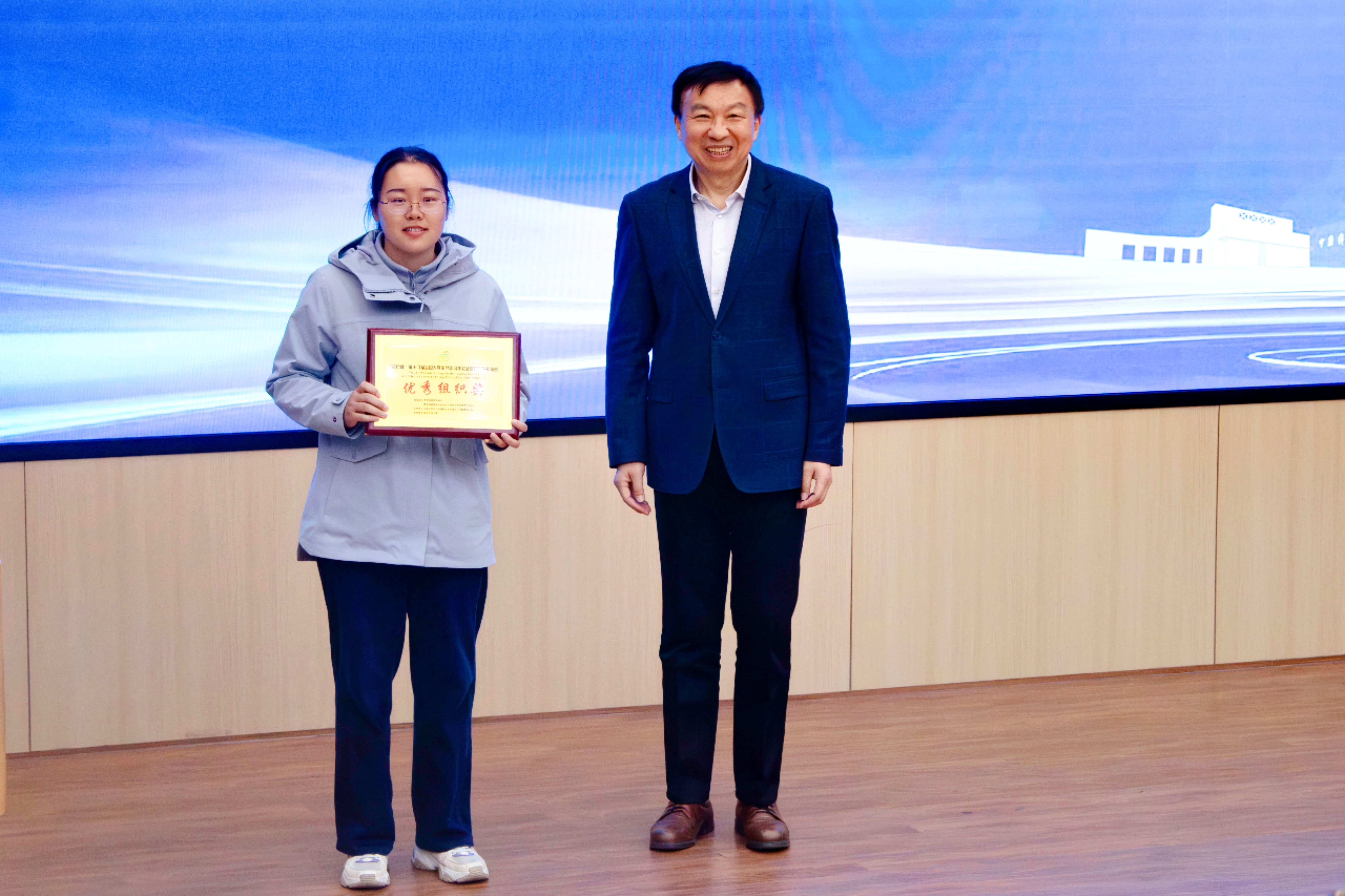 随后,校党委书记舒歌群为大赛组委会颁发优秀组织奖,并为两位荣获“2025年(第五届)全国能源动力类专业百篇优秀本科毕业论文(设计)奖项的同学颁奖。